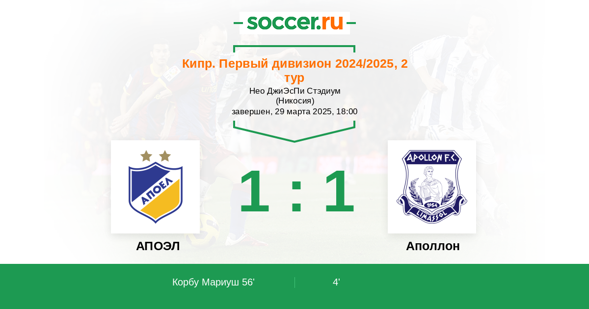 56' (1:1) Корбу Мариуш (30)