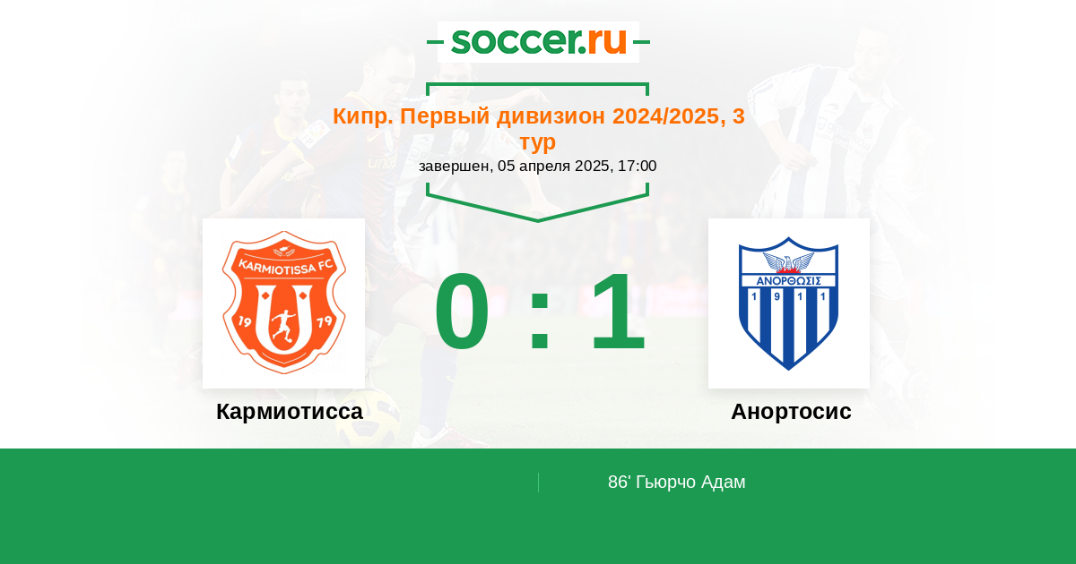 86' (0:1) Гьюрчо Адам (25)