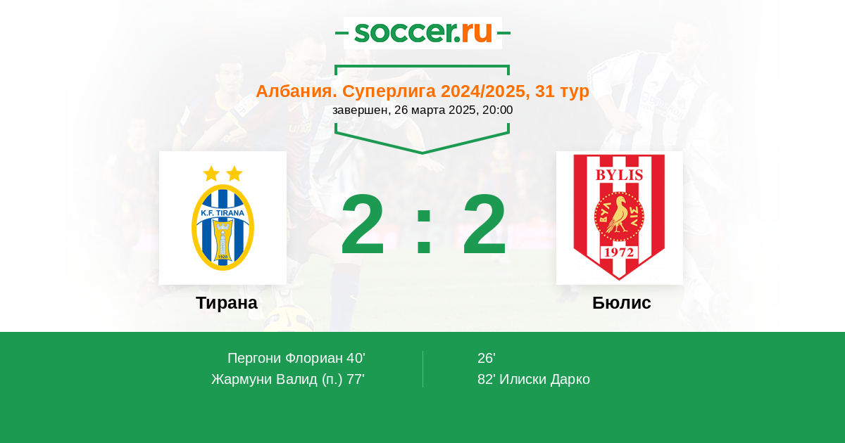 26' (0:1) A. Pergjoni