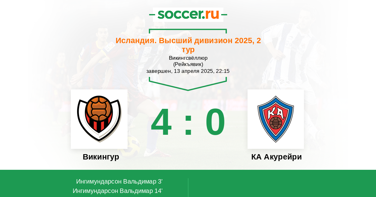 14' (2:0) Ингимундарсон Вальдимар (25) (Андрасон Виктор (8))