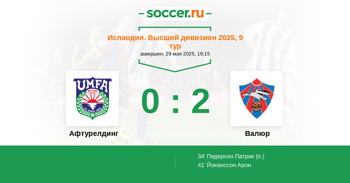 41' (0:2) Йоханссон Арон (7) (Хеймиссон Лукас (17))