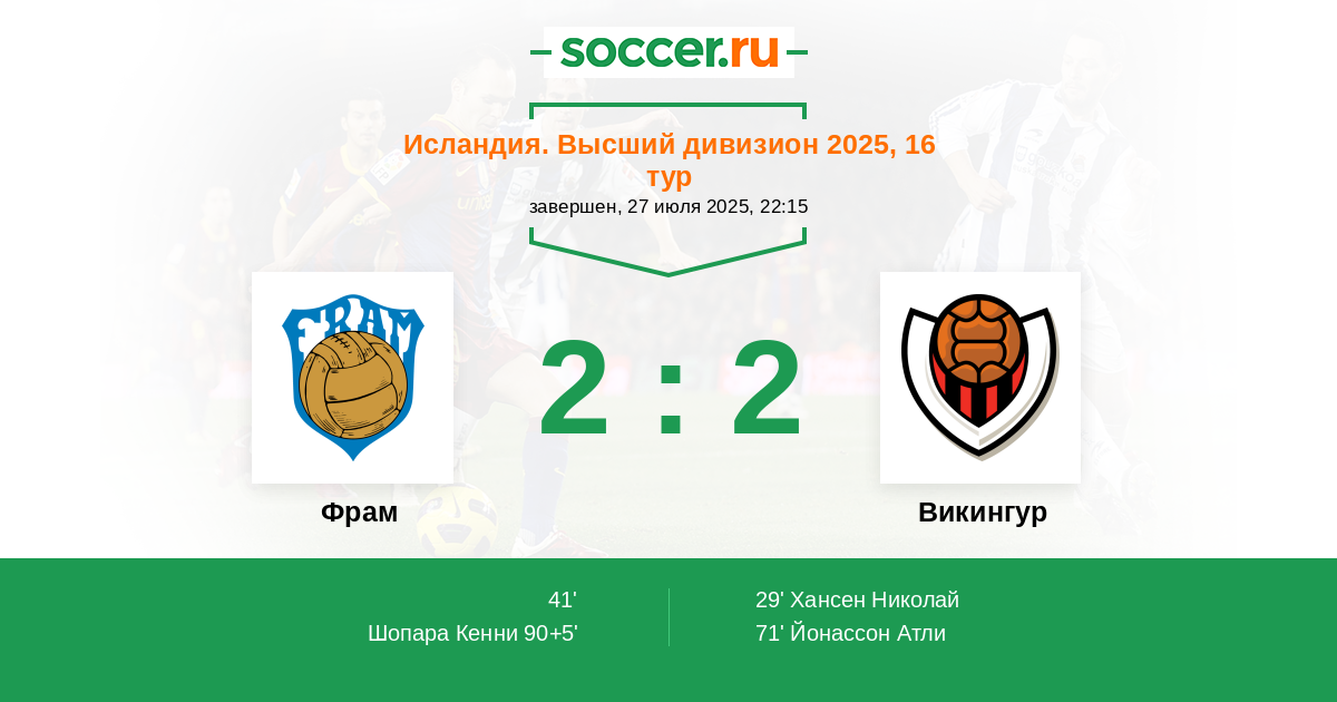 71' (1:2) Йонассон Атли (17) (Ингимундарсон Вальдимар (25))