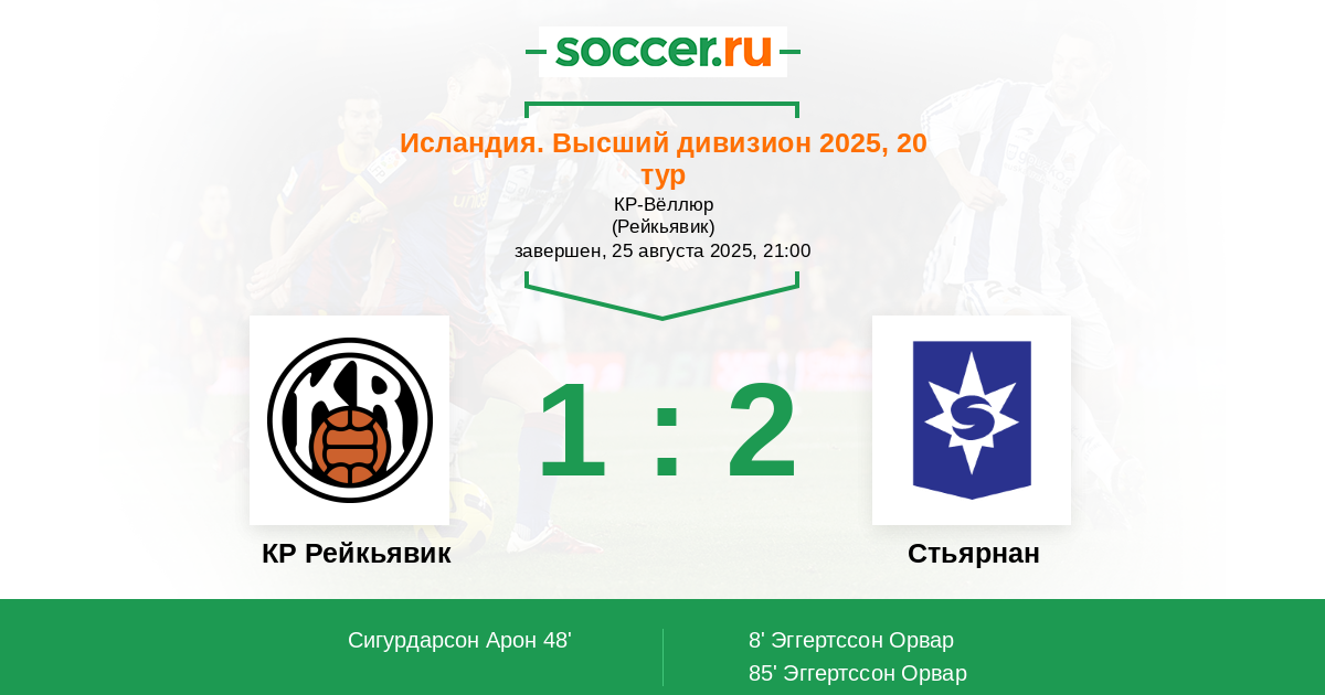 85' (1:2) Эггертссон Орвар (7) (Гуннарссон Йоханн (8))