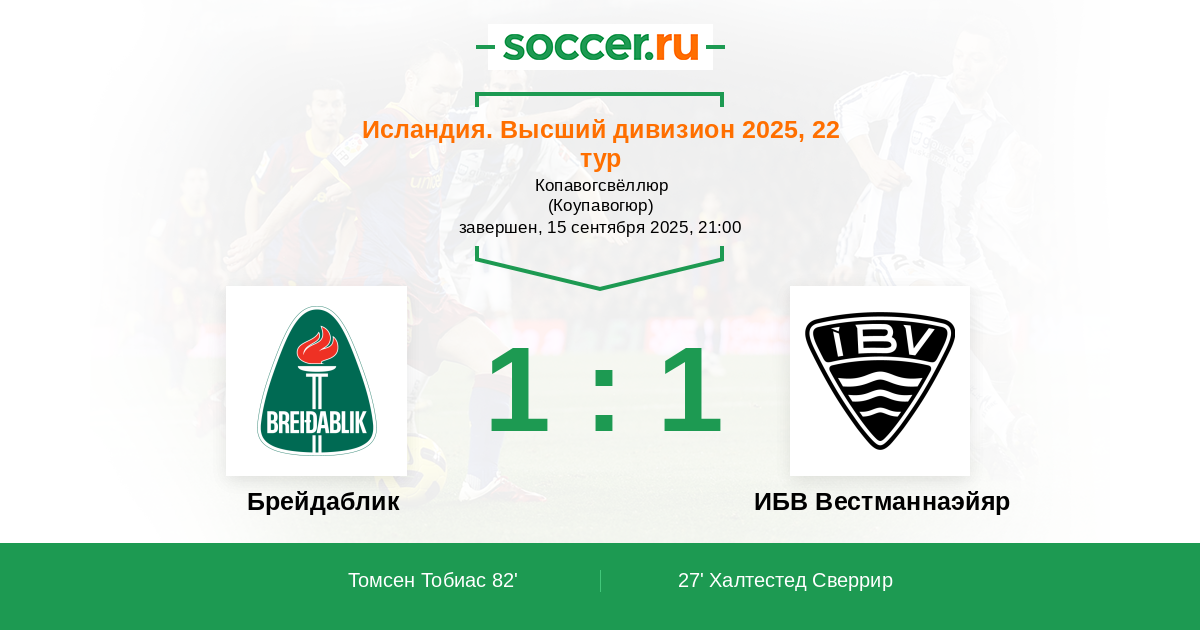 82' (1:1) Томсен Тобиас (77) (Йонссон Кристинн (19))