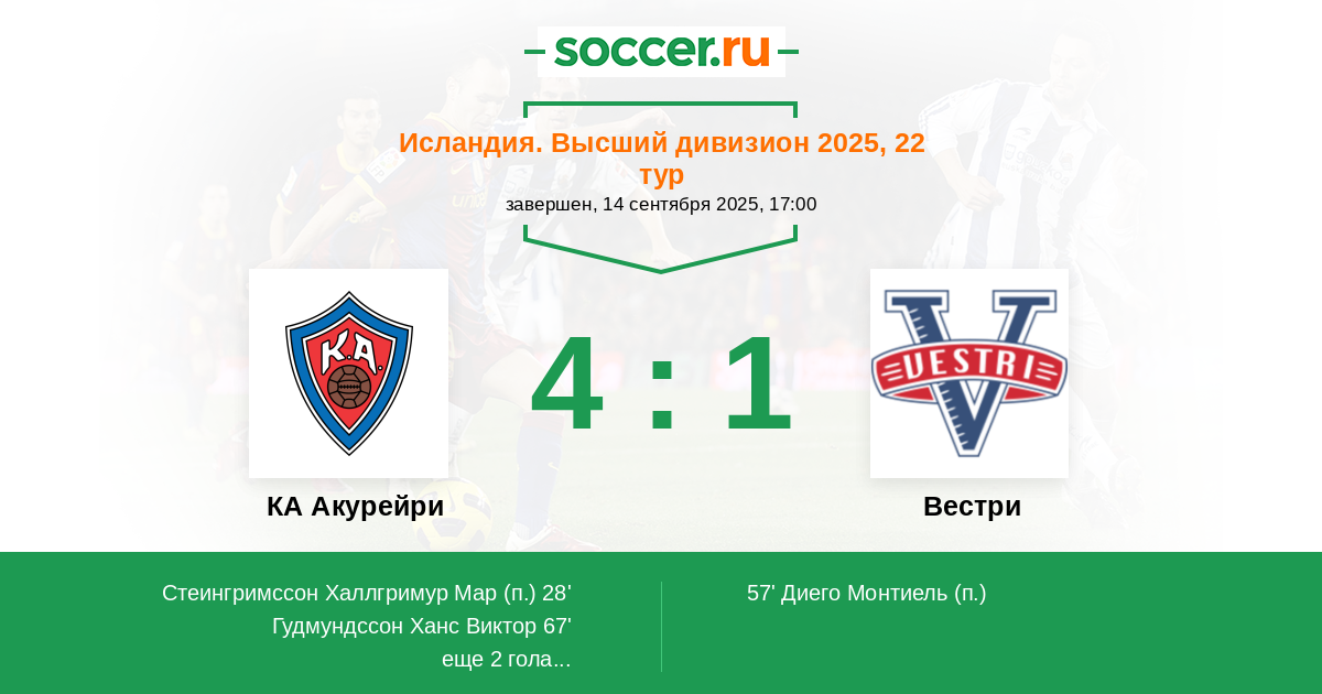 67' (2:1) Гудмундссон Ханс Виктор (28) (Стеингримссон Халлгримур Мар (10))