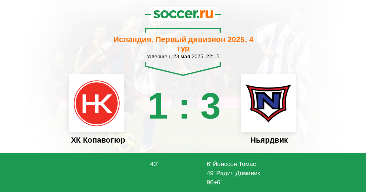 6' (0:1) Йонссон Томас (F. Gudnason)