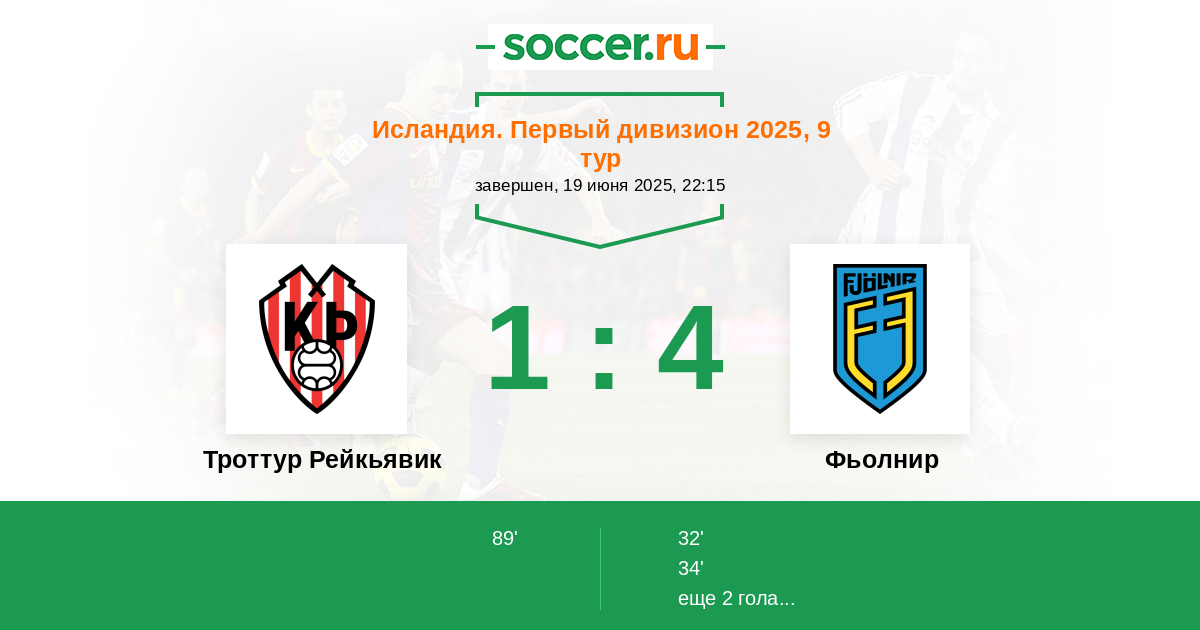 32' (0:1) H. Hilmarsson (Харальдссон Рейнир (3))