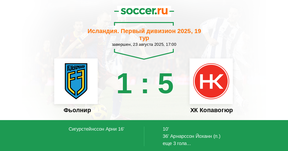 36' (1:2) Арнарссон Йоханн (9)