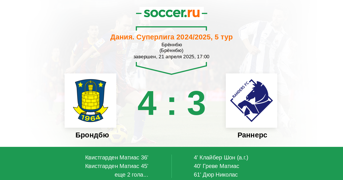 40' (1:2) Греве Матиас (17) (Кэмпбелл Норман (10))