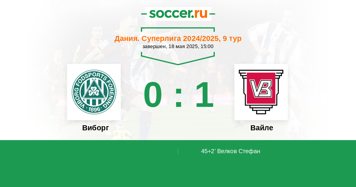 45+2' (0:1) Велков Стефан (13) (Гаммелгард Кристиан (37))