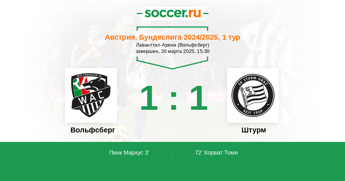 3' (1:0) Пинк Маркус (32) (Матич Борис (2))