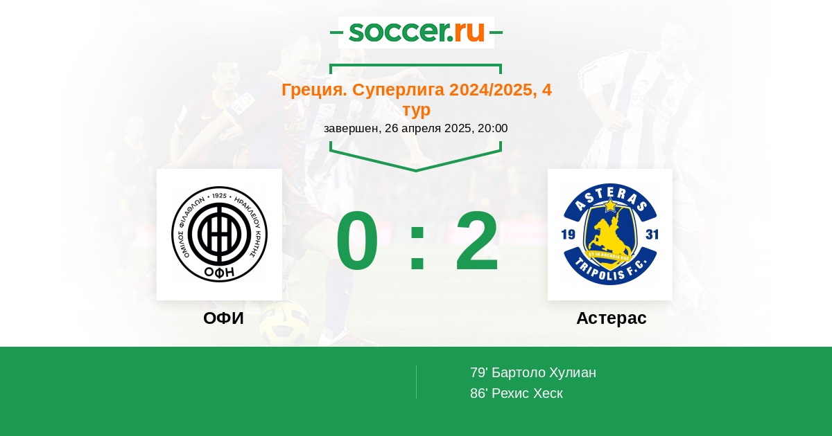 Запасные: 10 Нейра Хуан (с 67'), 29 Юнг Эндрю (с 67'), 45 Апостолакис Яннис (с 87'), 24 Ламбропулос Константинос, 91 Хнарис Манолис, 34 Льюис Кевин, 31 Христогеоргос Никос, 5 Матеус Брессан, 4 Маринакис Николаос