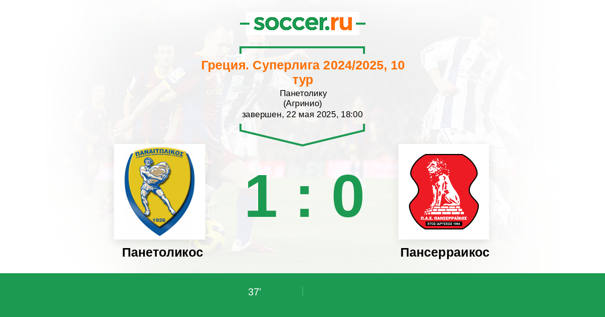 37' (1:0) A. Apostolopoulos (A. Tetteh)