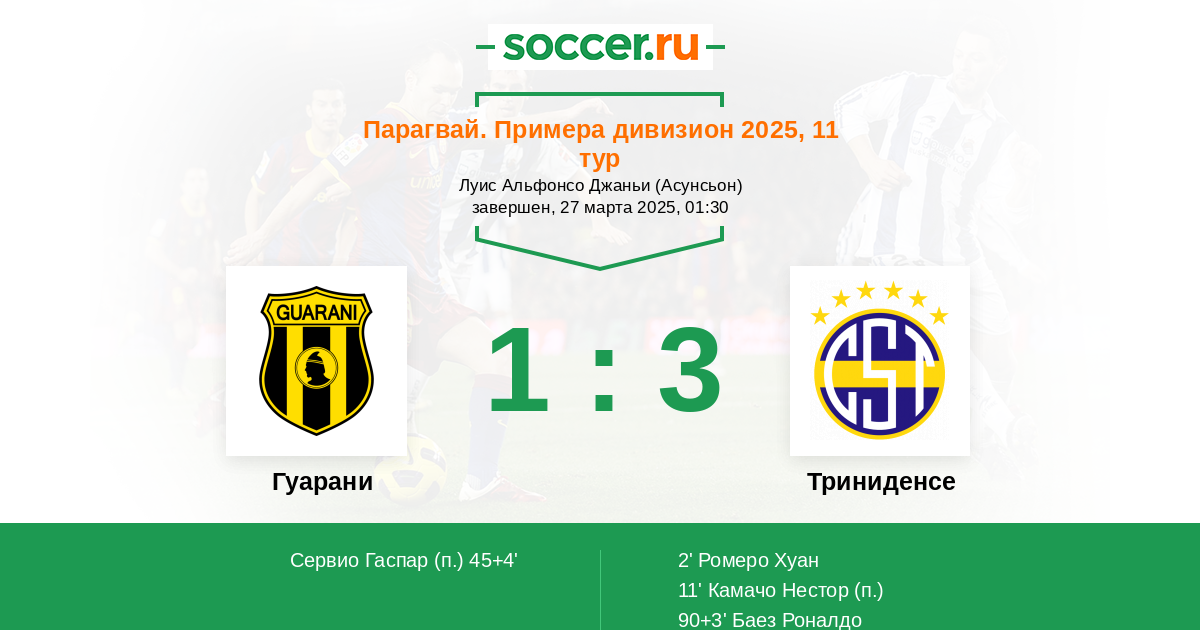 Запасные: 10 Торрес Диего (с 57'), 11 Баез Роналдо (с 65'), 19 Альварес Алекс (с 74'), 9 Гименес Оскар (с 74'), 36 Кабаньяс Виктор (с 75'), 16 Аревало Родриго, 6 Орсуса Эдгардо, 28 Легуизамон Брахиан, 26 Сентурион Максимилиано, 2 Руис Диас Армандо Марсело, 1 Дуфор Матиас, 13 Сальседо Хуан