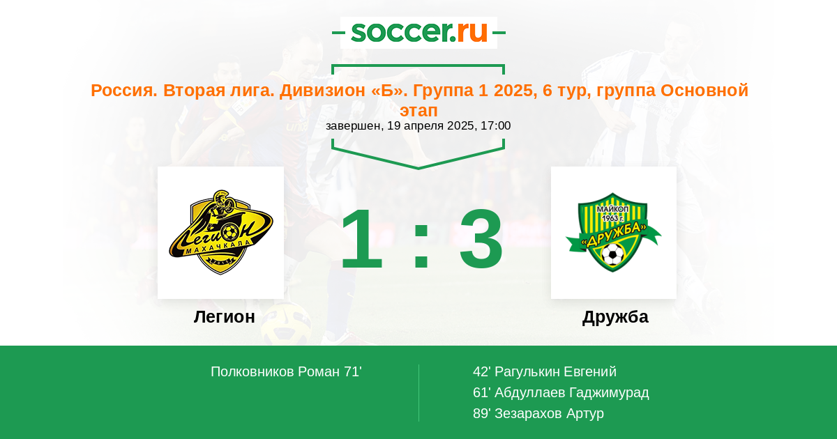 71' (1:2) Полковников Роман