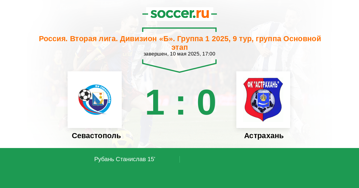 15' (1:0) Рубан Станислав