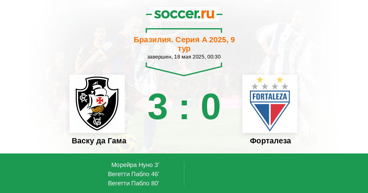 3' (1:0) Морейра Нуно (17) (Моура Хьюго (25))