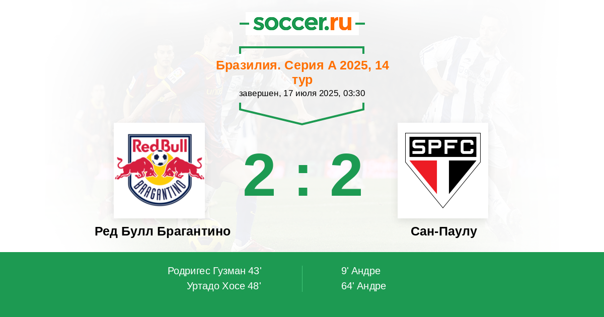 64' (2:2) Андре (17) (Лусиано (10))