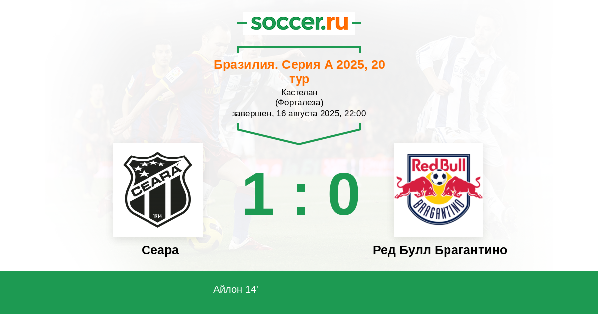 14' (1:0) Айлон (11) (Галеано Антонио (27))