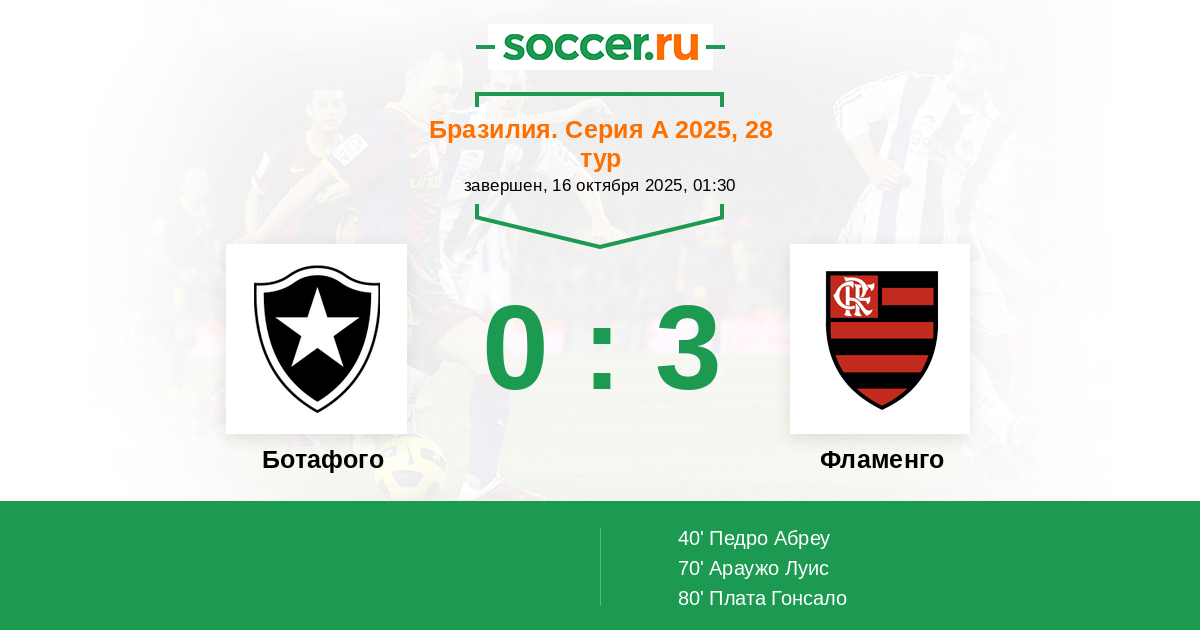 70' (0:2) Араужо Луис (7) (Педро Абреу (9))