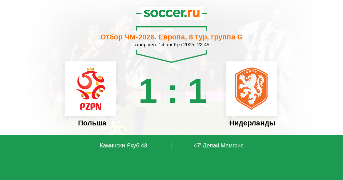 43' (1:0) Камински Якуб (13) (Левандовски Роберт (9))
