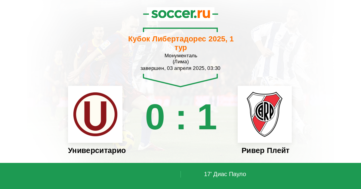 17' (0:1) Диас Пауло (17) (Колидио Факундо (11))