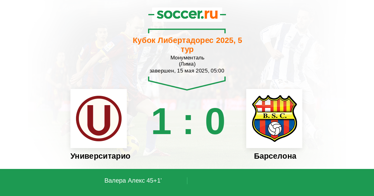 45+1' (1:0) Валера Алекс (20) (Конша Хайро (17))