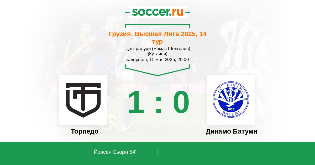 54' (1:0) Йонсен Бьорн (9) (Гудушаури Пата (20))