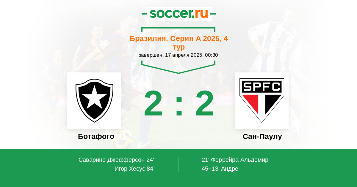 24' (1:1) Саварино Джефферсон (10) (Гимараеш Артур (7))