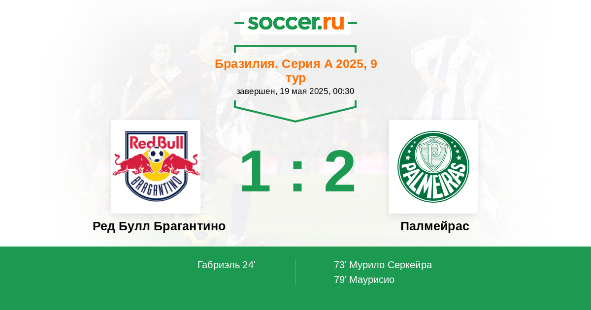 24' (1:0) Габриэль (6) (Барбоса Лукас (21))