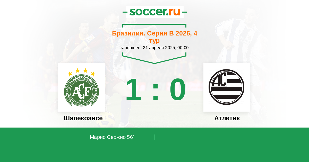 56' (1:0) Марио Сержио (9) (Маилтон (22))