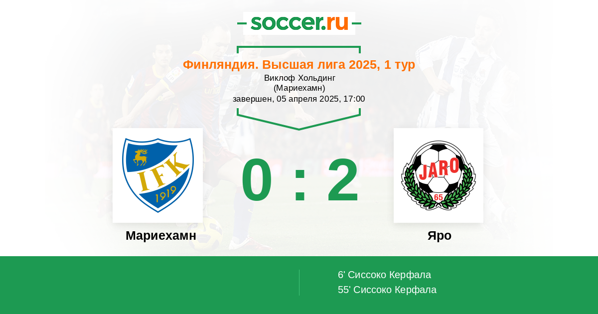 6' (0:1) Сиссоко Керфала (95) (Бьоркског Альбин (11))
