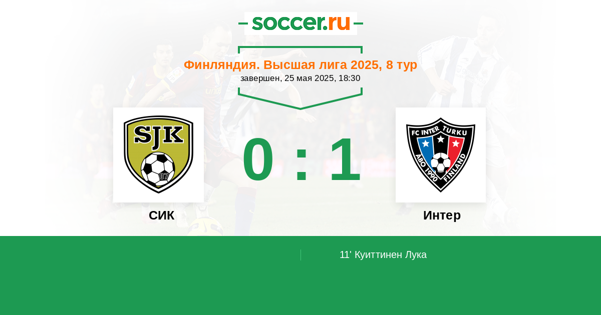 11' (0:1) Куиттинен Лука (22) (L. Essomba)