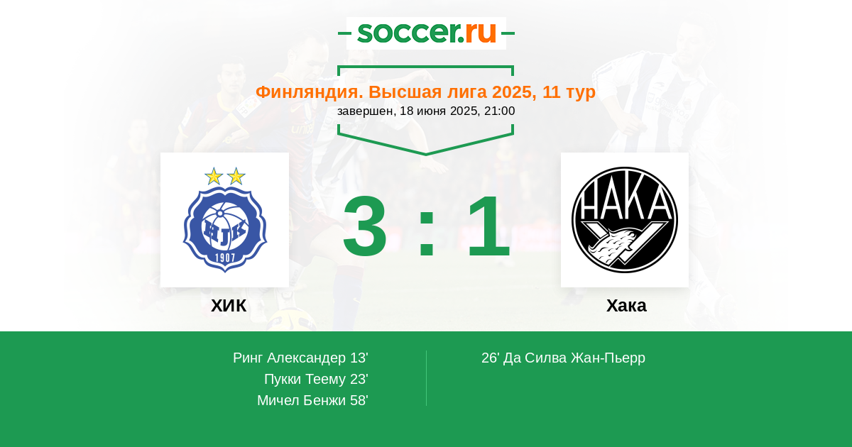 13' (1:0) Ринг Александер (4) (Пукки Теему (20))