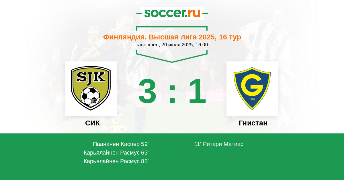 Запасные: 22 Мурило (с 79'), 5 Вяисто Оскари (с 73'), 8 Гаск Валентин (с 60'), 9 Стренг Йеремия (с 60'), 26 Ханнола Пири (с 46'), 33 Махааль Аниис, 11 Лайне Лаури, 80 Риихимаки Хеммо