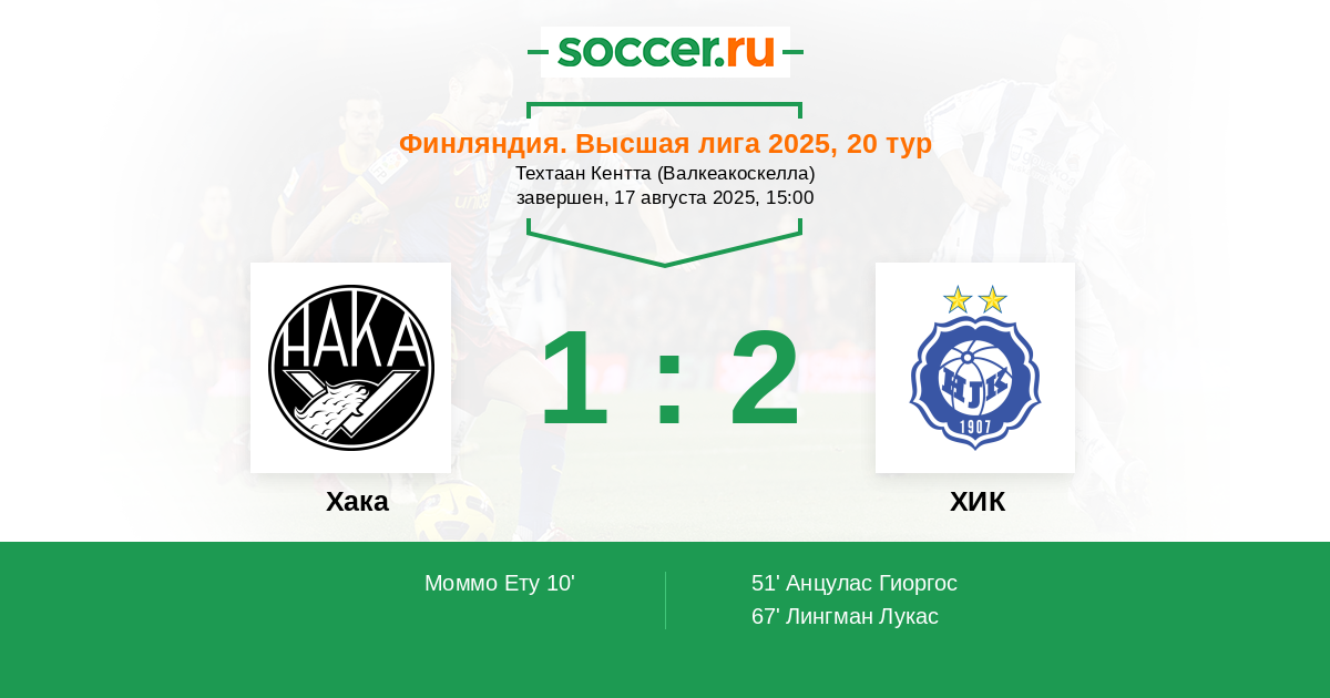 67' (1:2) Лингман Лукас (10) (Хостикка Сантери (7))
