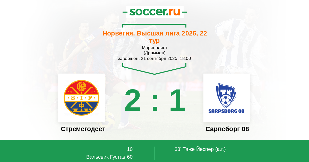 33' (1:1) Автогол Таже Йеспер (25)