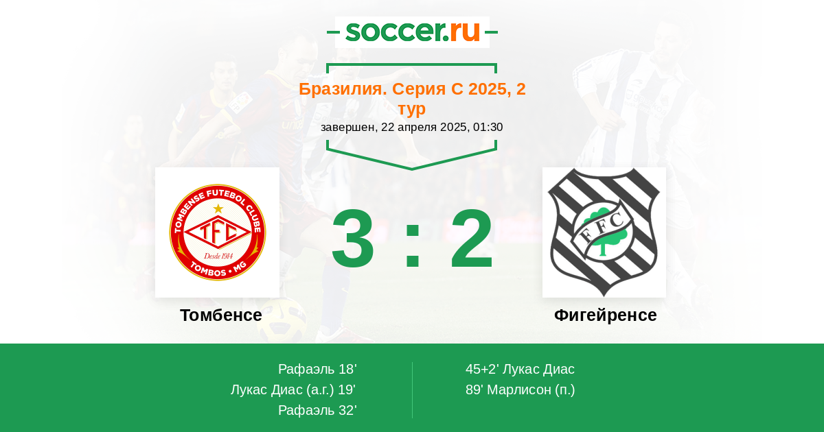 Запасные: Диаш Фабрисио (с 51'), Коутиньо Дуглас (с 70'), Фонсека Фернандо (с 70'), Жулио Энрике (с 74'), Эдуардо Зе (с 74'), Винисиус, Адсоннальдо, Дави Шнейдер, Ренан Джефферсон, Жоау Витор, Мандовани, Педро Оливейра