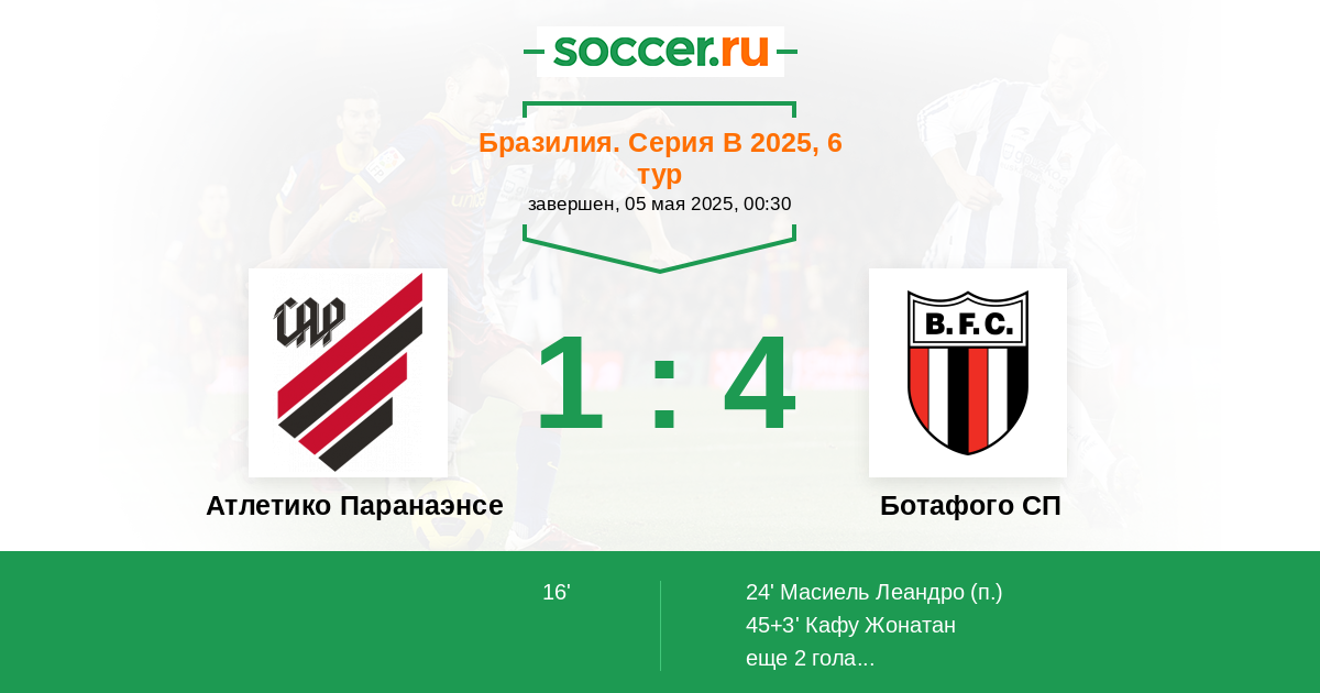 68' (1:4) Жезуз Алешандре (9) (Габриэль Биспо (16))