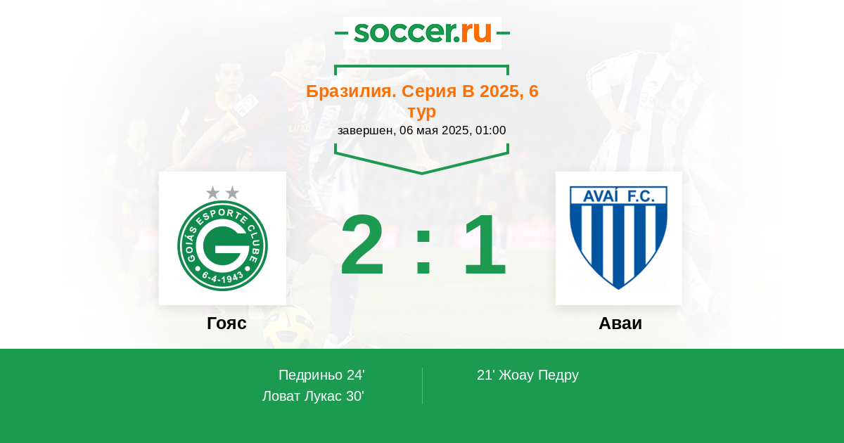 21' (0:1) Жоау Педру (80)