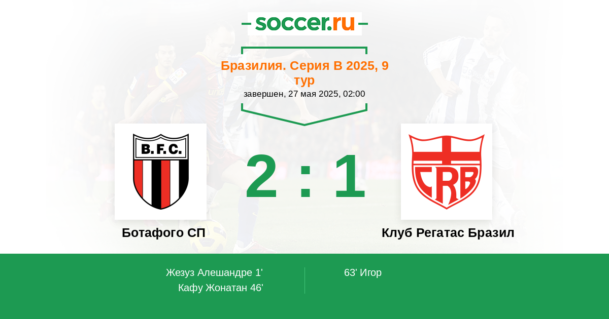 1' (1:0) Жезуз Алешандре (9) (Риссо Габриэль (6))