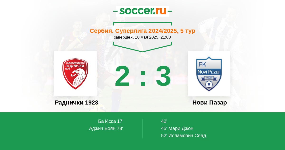 17' (1:0) Ба Исса (77) (B. Mircetic)
