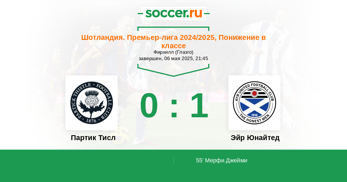 55' (0:1) Мерфи Джейми (15) (МаКленнан Коннор (10))