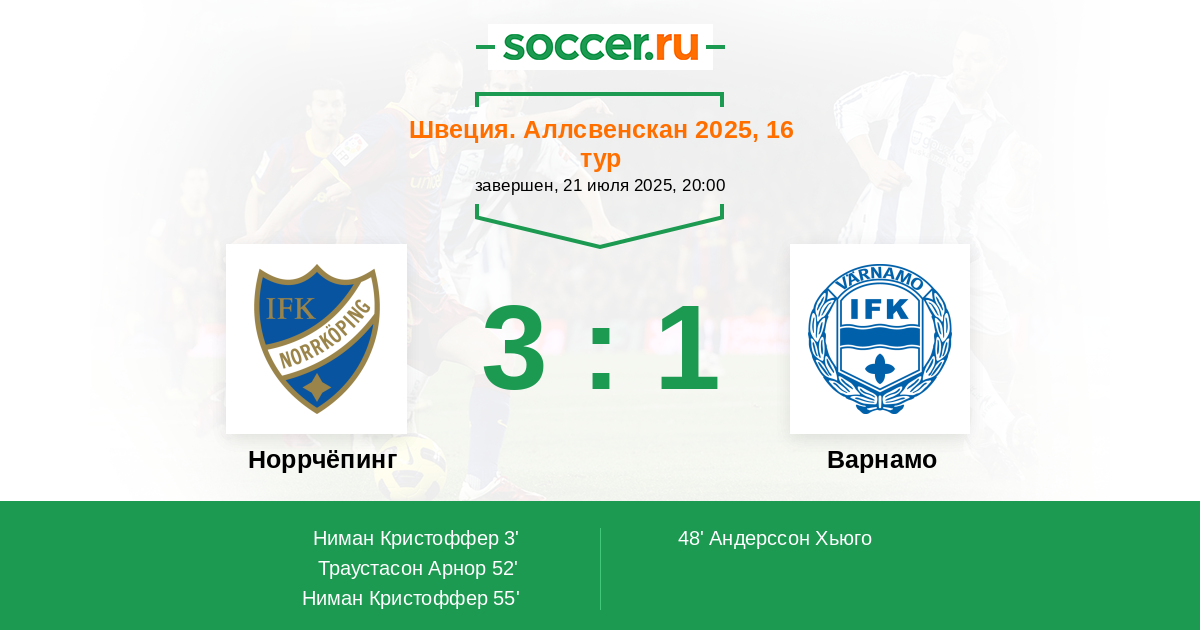 52' (2:1) Траустасон Арнор (9) (Андерссон Давид (40))