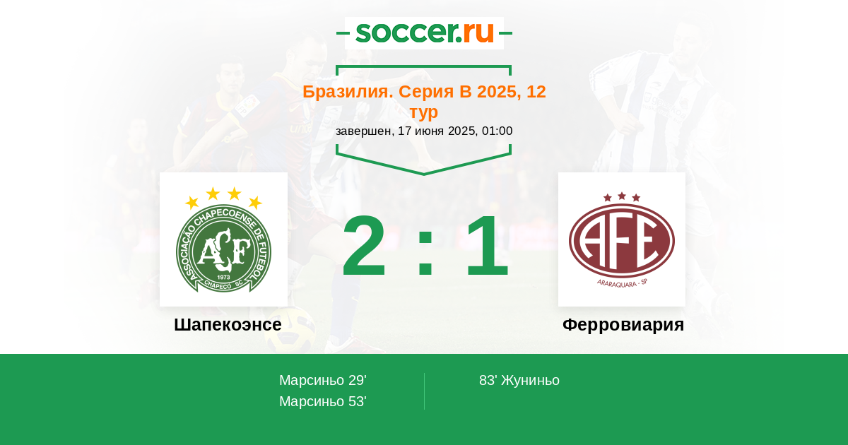 29' (1:0) Марсиньо (7) (Маилтон (22))