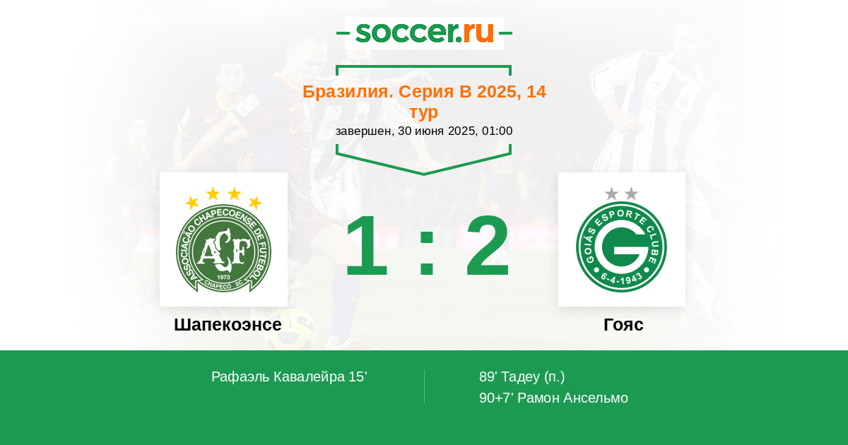 90+7' (1:2) Рамон Ансельмо (9) (Гава Рафаэл (8))