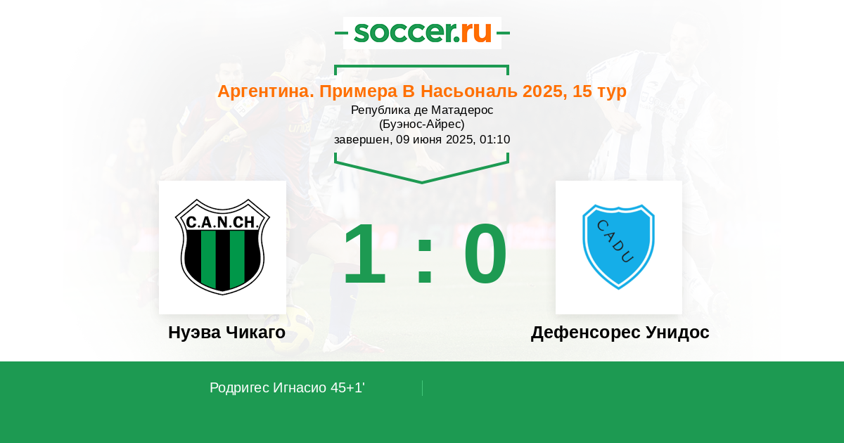 45+1' (1:0) Родригес Игнасио (9)