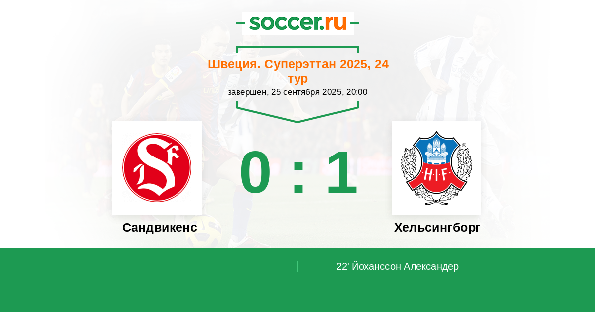 22' (0:1) Йоханссон Александер (16) (Ага Оскар (29))