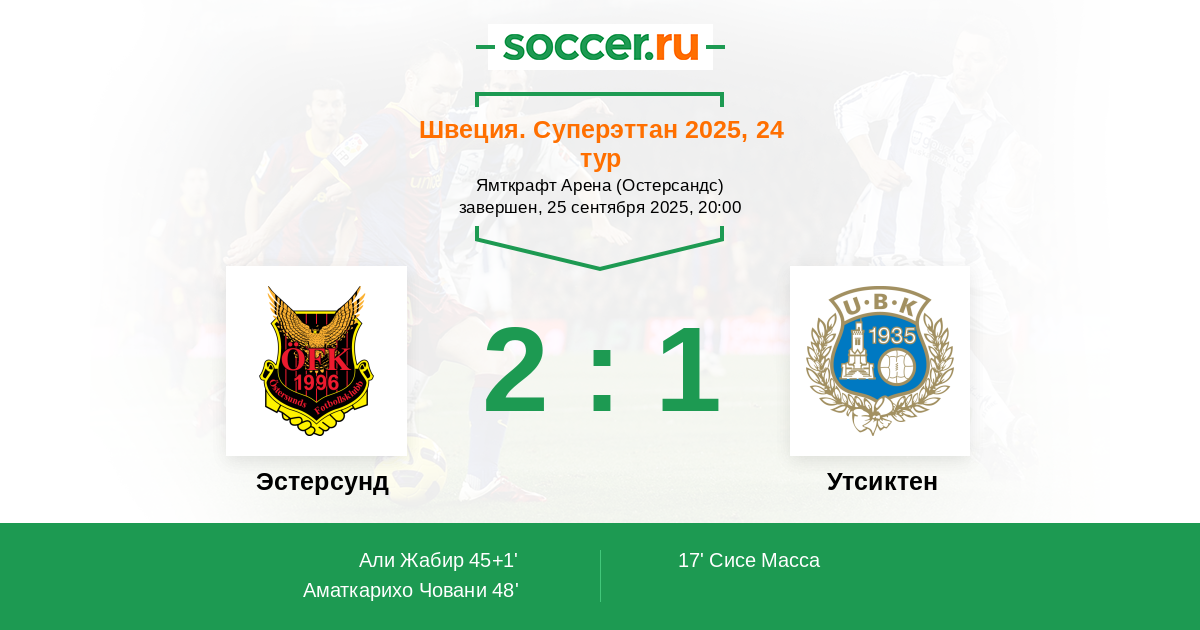 17' (0:1) Сисе Масса (9) (Лагерлунд Себастьян (33))