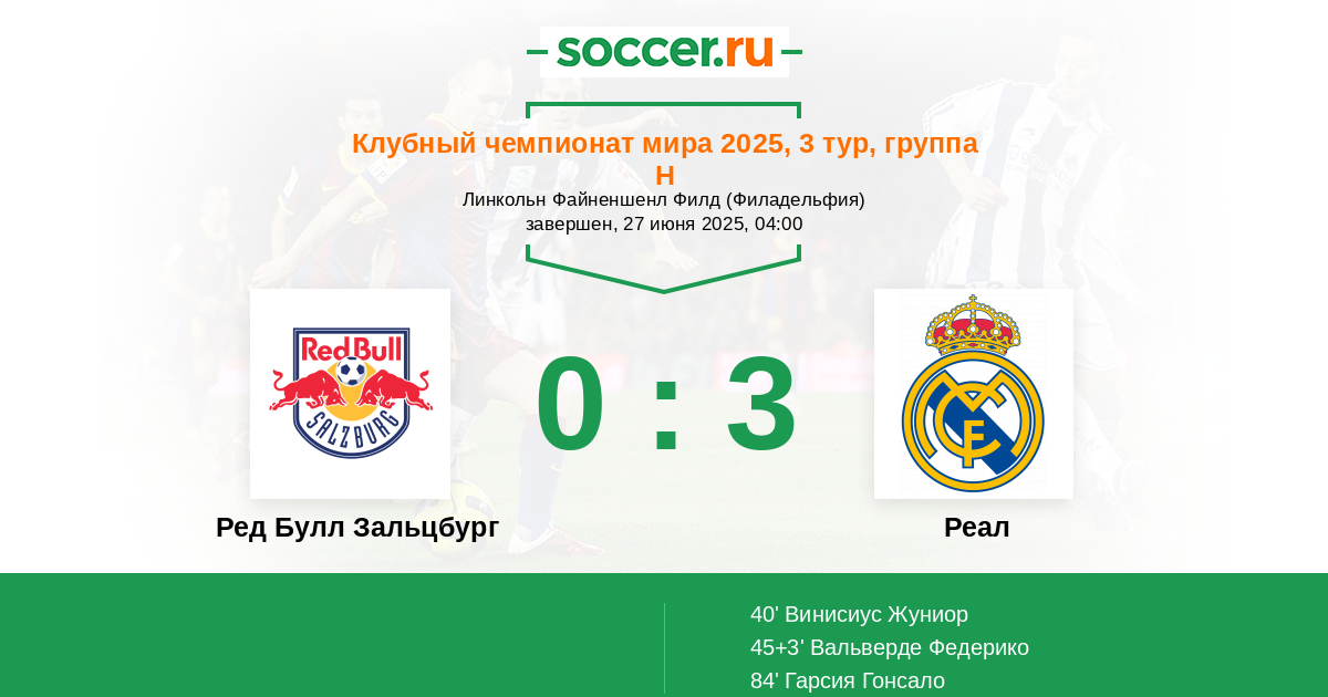 40' (0:1) Винисиус Жуниор (7) (Беллингем Джуд (5))